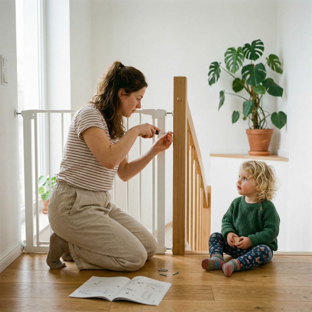 • Treppen sichern. Das ist nicht optional. Jede Treppe in dem Haus braucht Türschutzgitter oben und unten. Das ist nicht paranoid. Das ist Realität.
